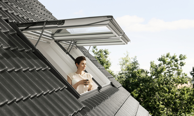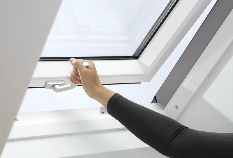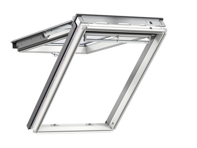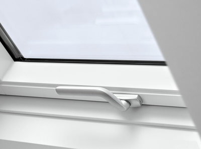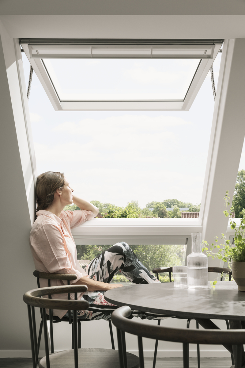 La ventana Proyectante VELUX nos permite tanto desde la barra superior como desde la manilla inferior. Su apertura hasta 45º nos proporciona una escelente vista. El accionamiento desde la manilla inferior, segun la altura de instalacion, resulta muy comoda para asomarse.